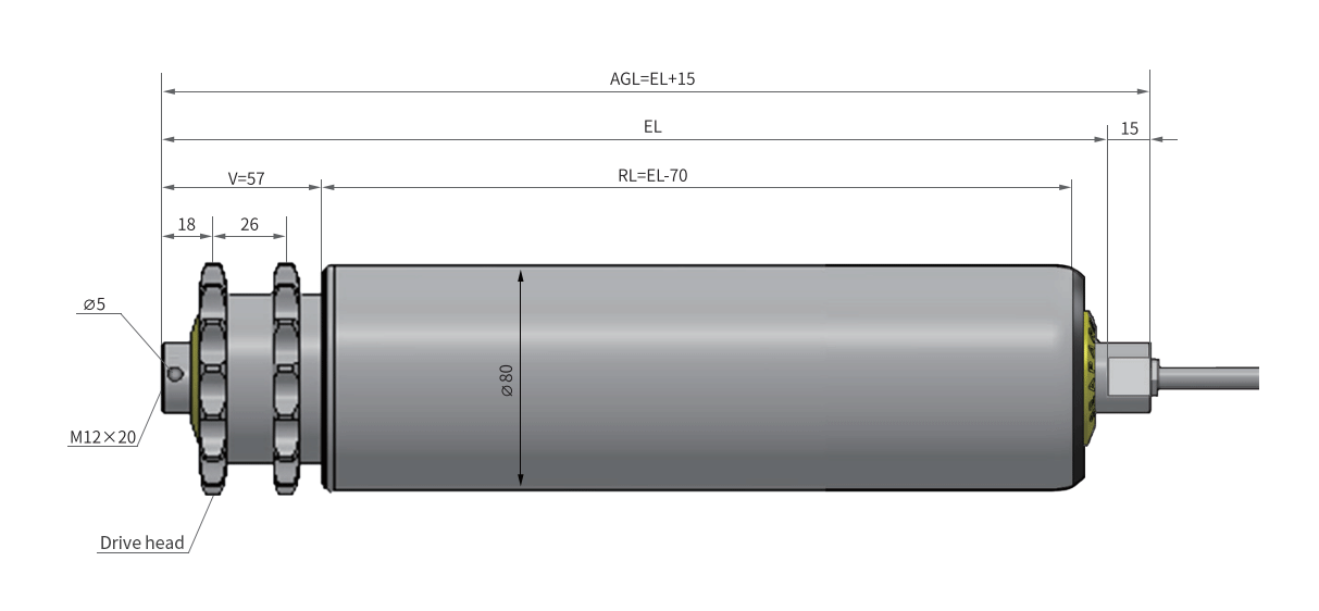 ►Drive head: sprocket 5/8" Z15, Z18, or other sizes of sprockets are available, as well as timing belt pulleys.